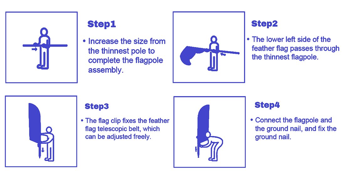 Wide Application: Feather flag can be widely used in various large-scale outdoor activities, such as opening ceremonies, advertising banners, indicators, slogans, etc.