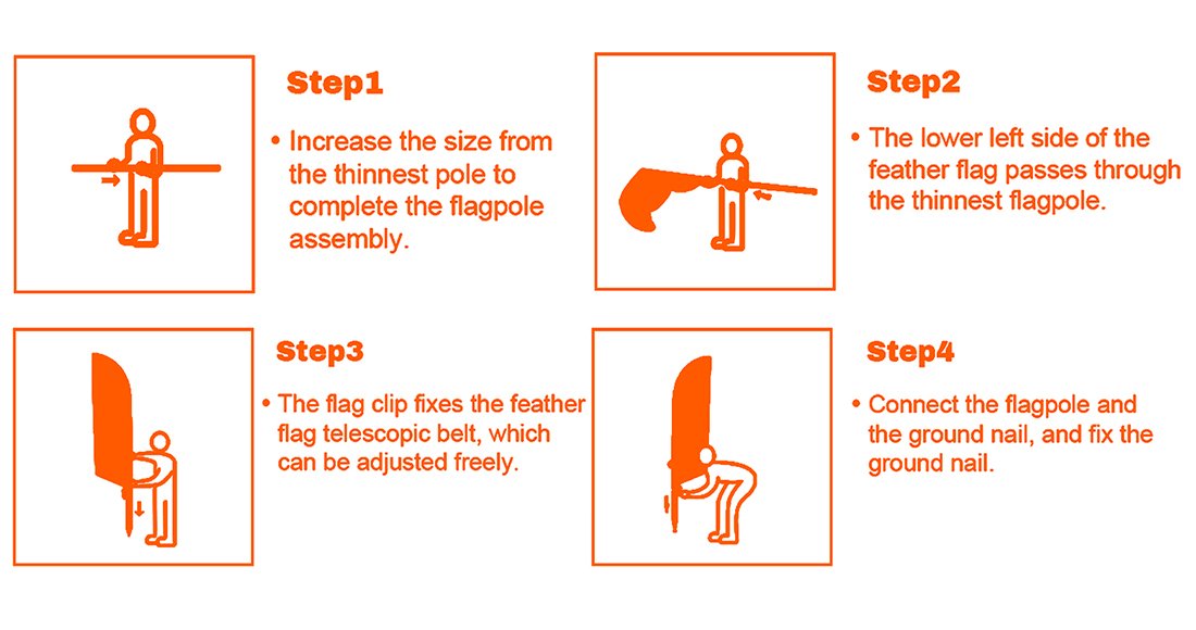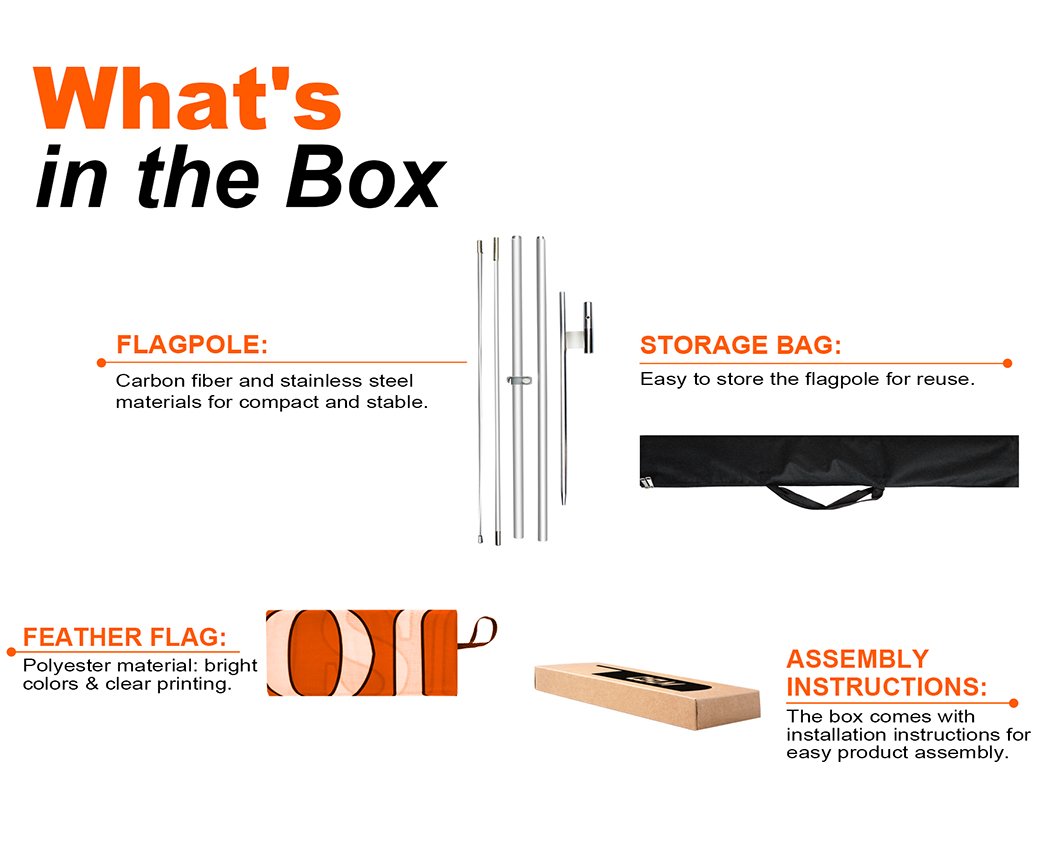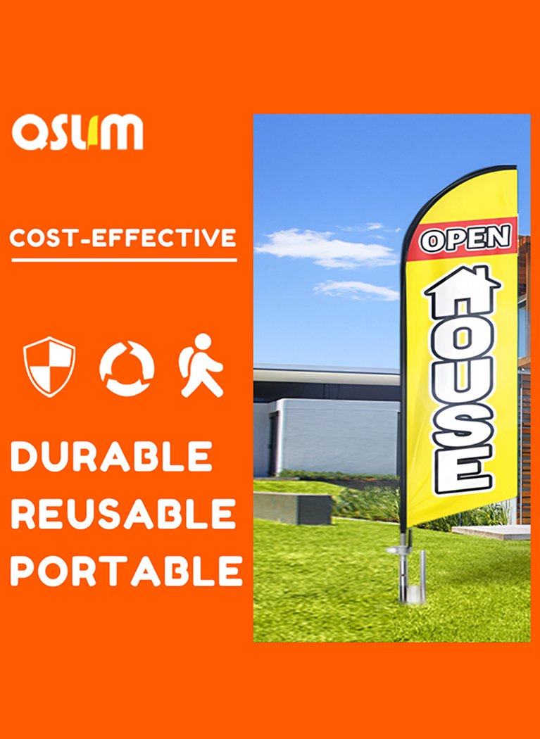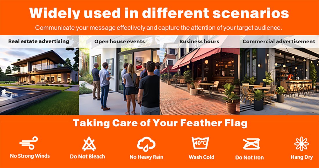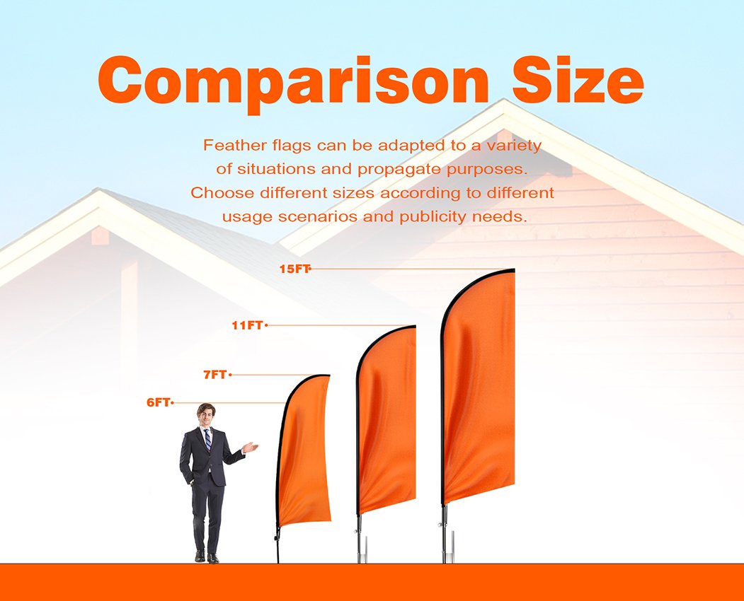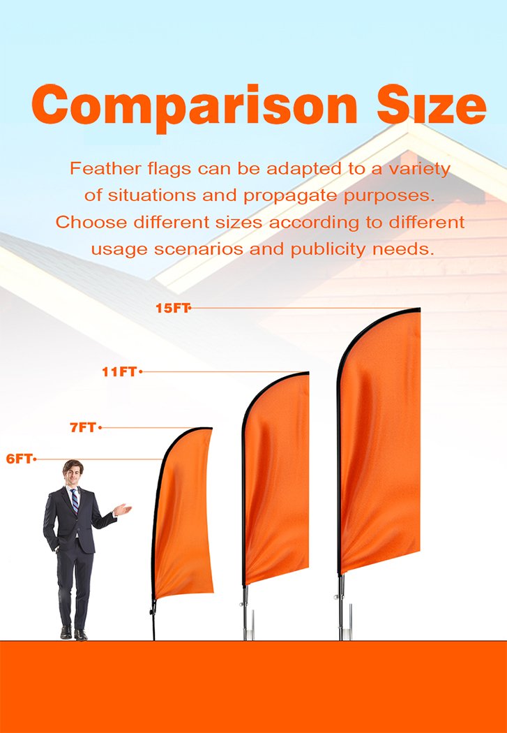 Wide Application: Feather flag can be widely used in various large-scale outdoor activities, such as opening ceremonies, advertising banners, indicators, slogans, etc.