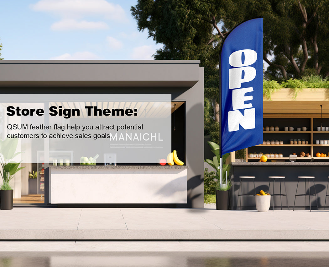QSUM store offers custom feather flags. If you have more ideas please send us your artwork and we will make it a reality.