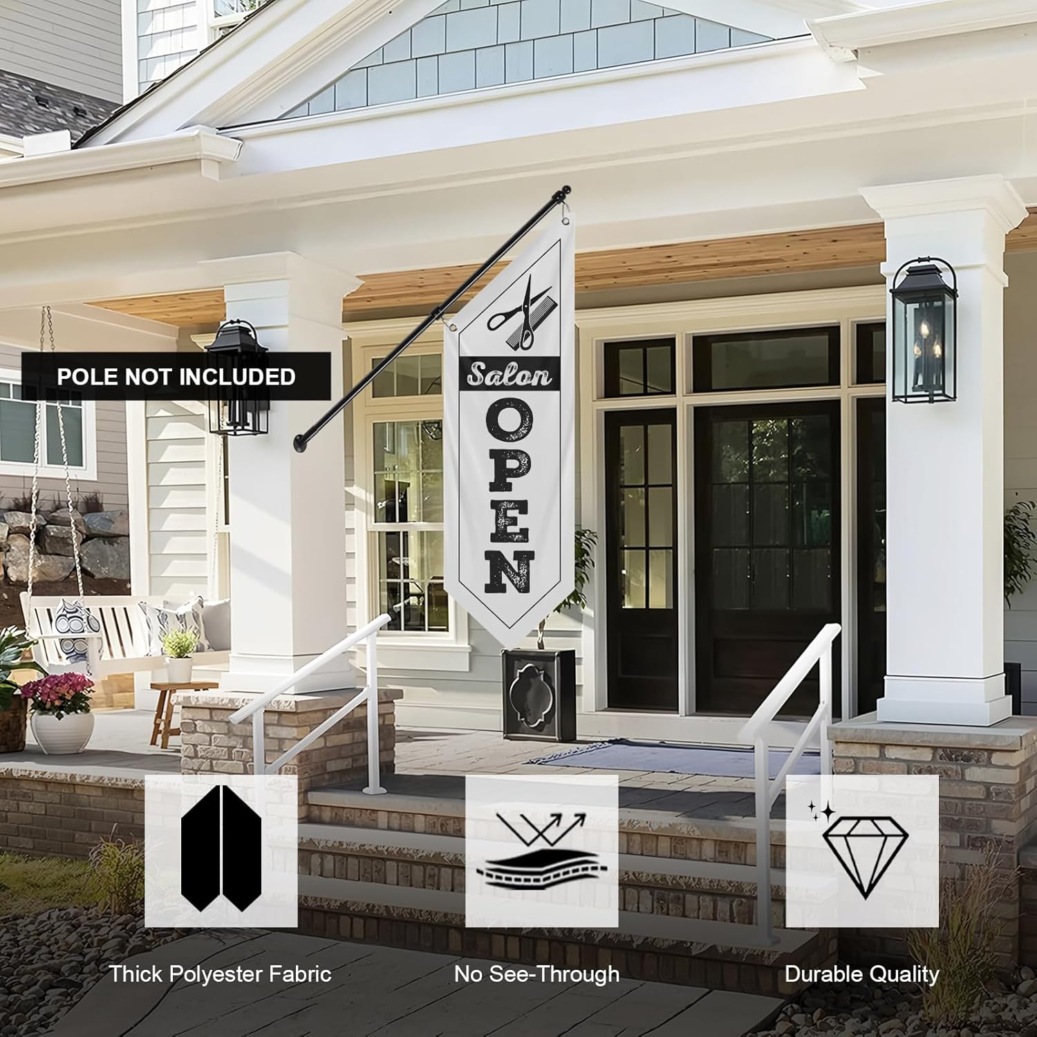 White Salon Open Flag, Double-Sided Three-ply (No Pole)