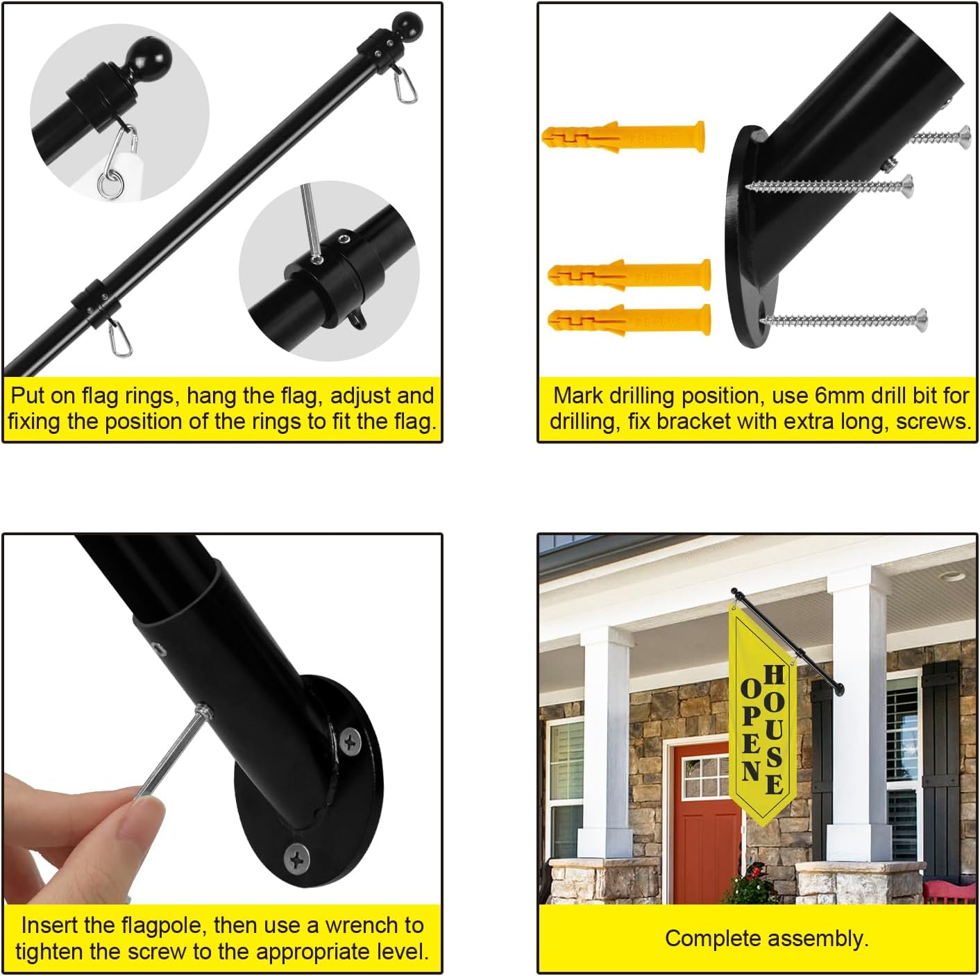 - Complete installation kit including: Each set open flags includes a stainless steel flagpole, open flag, pre-painted metal wall bracket, and mounting screws – ready to install out of the box