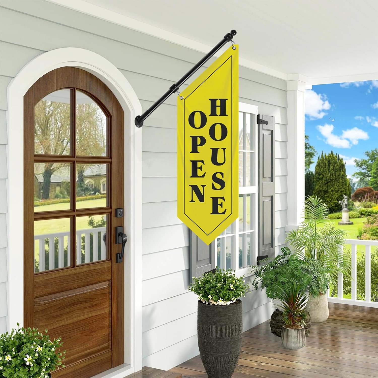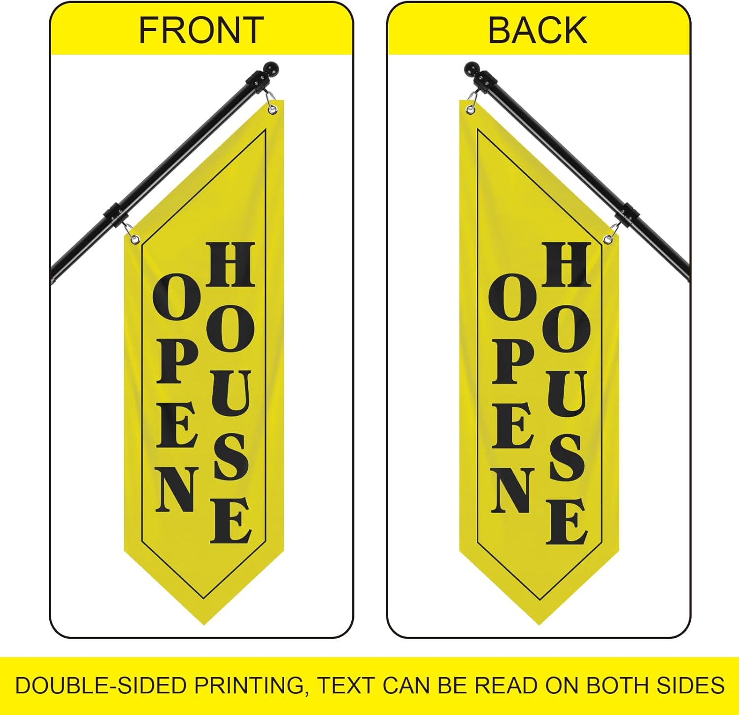 Open House Wall Flag, Double-Sided Three-ply Hanging Open Sign with Pole and Mounting Kit (Yellow-B)