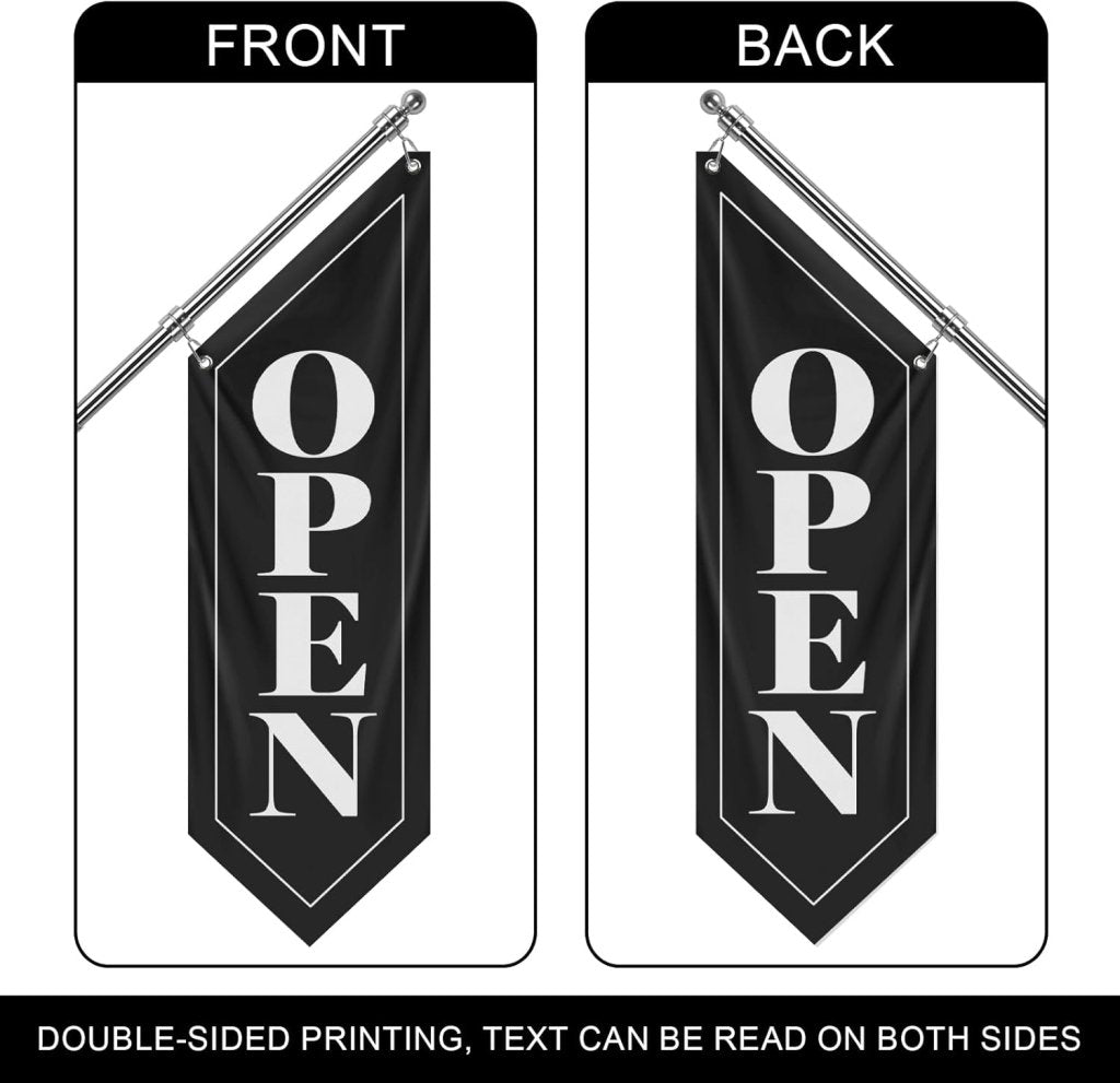 Vintage Style Open Flag, Double - Sided Three - ply Hanging Open Sign with Pole and Mounting Kit (Black - W, 27"))