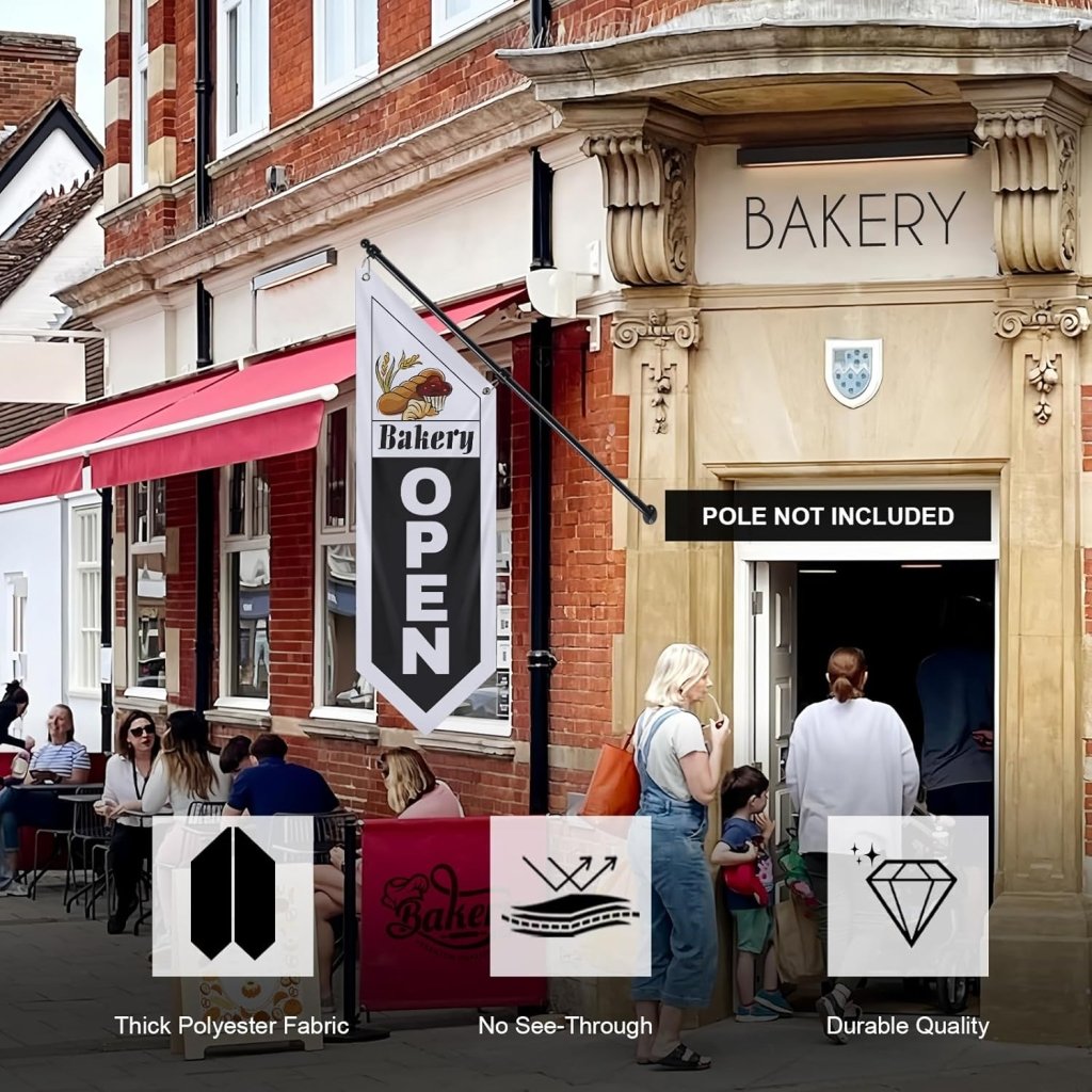 Bakery Black Open Flag, Double - Sided Three - ply (No Pole)
