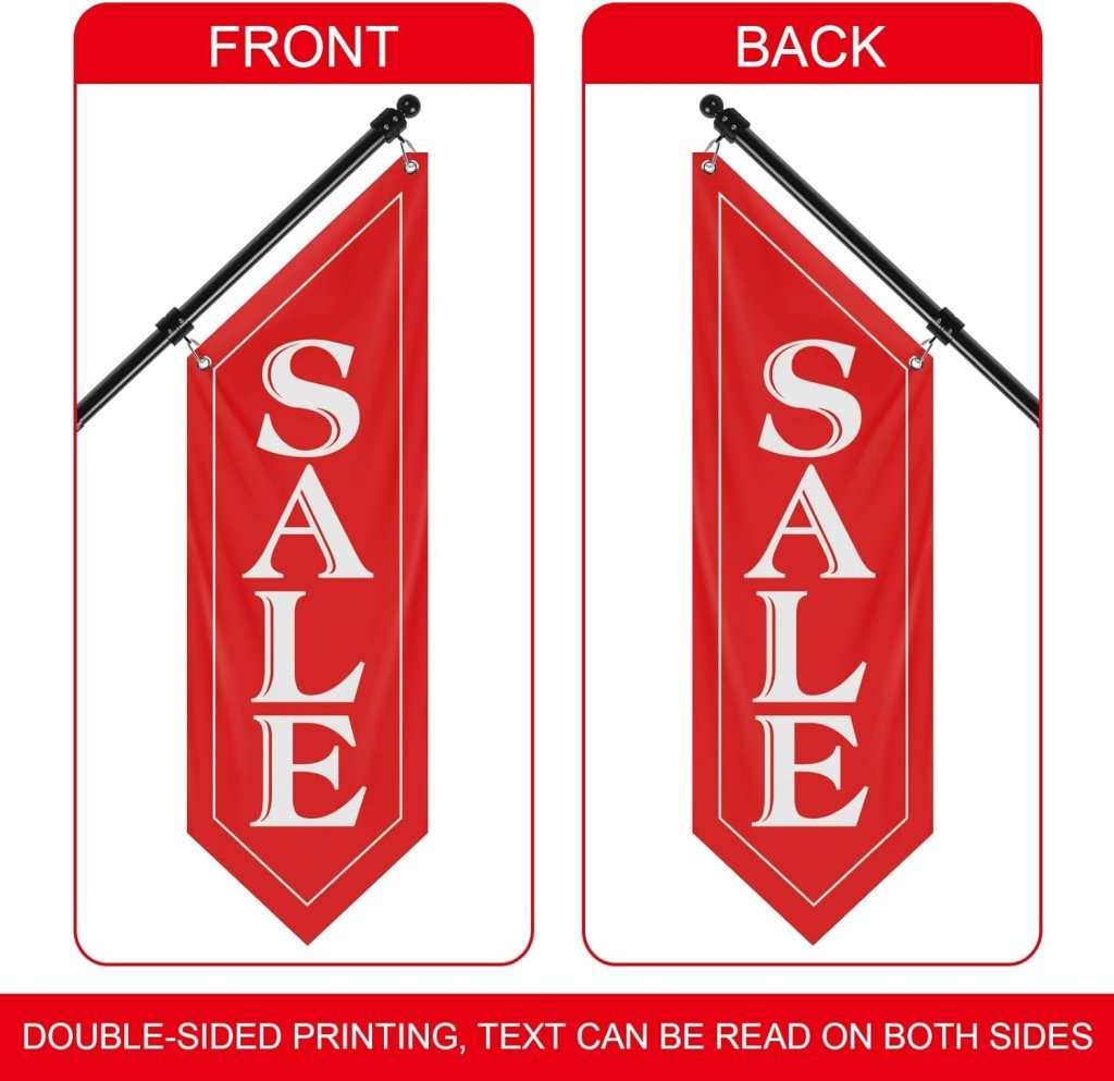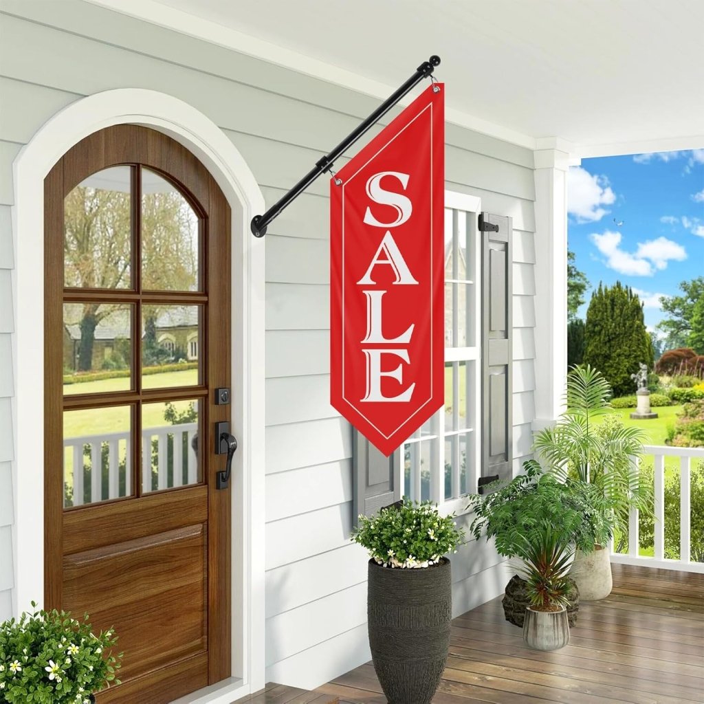 Sale Wall - Mounted Flag, Double - Sided Three - ply Hanging Open Sign with Pole and Mounting Kit(Red - B)