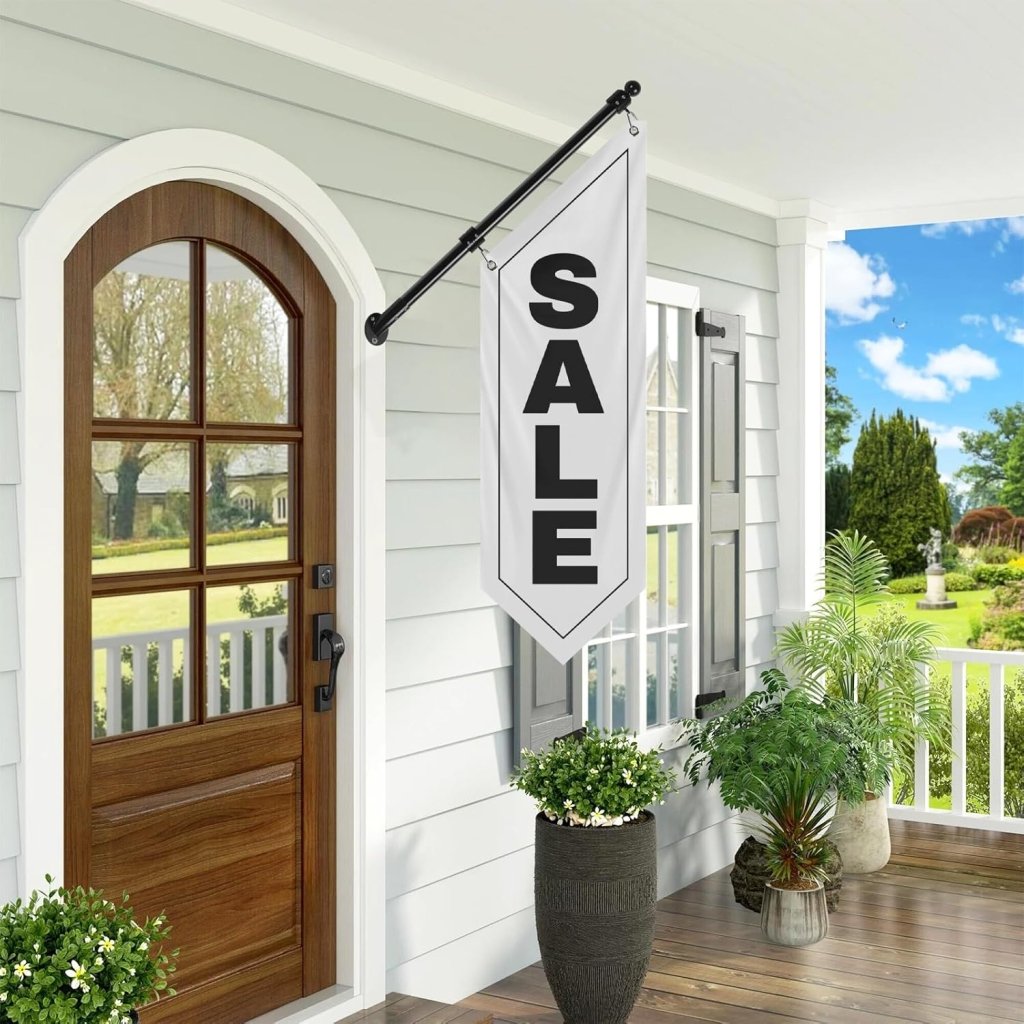 Sale Wall - Mounted Flag, Double - Sided Three - ply Hanging Open Sign with Pole and Mounting Kit(White - B)
