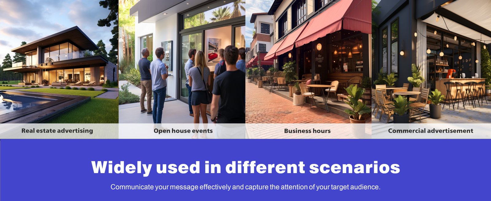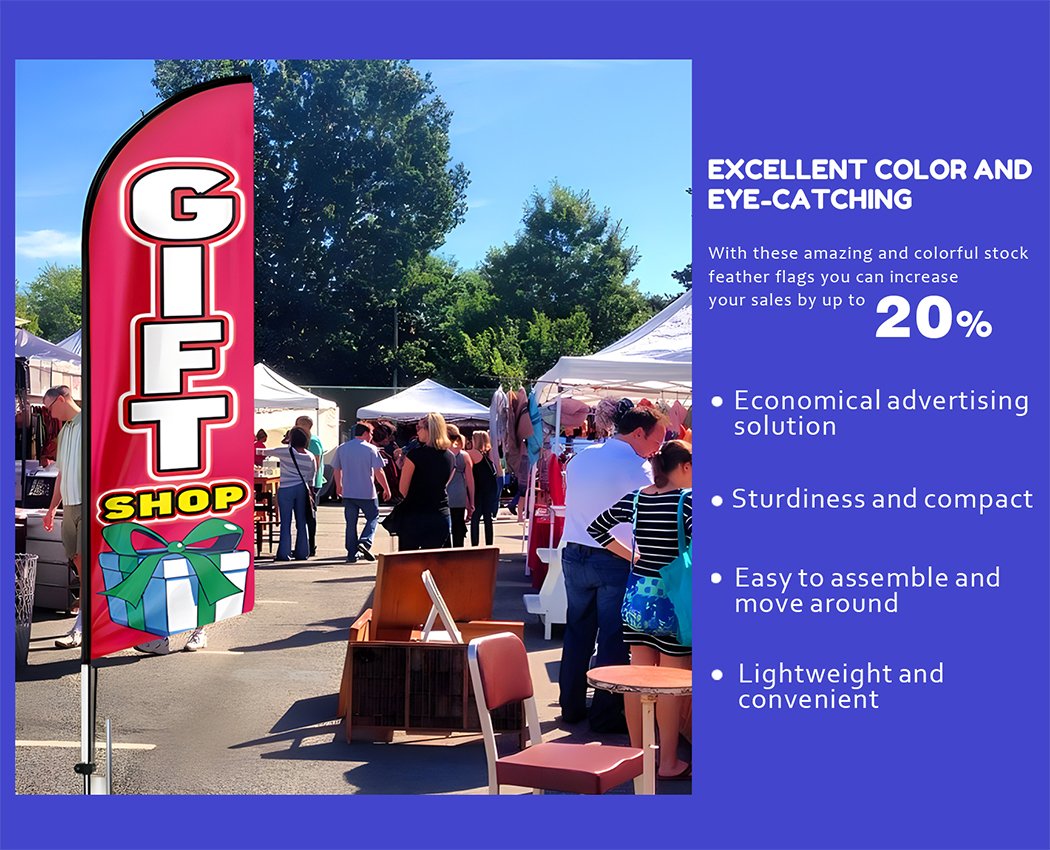 - Swooper-flagoj estas facile kunveneblaj, malmunteblaj, porteblaj kaj movigeblaj, rapide montrante vian reklammesaĝon.