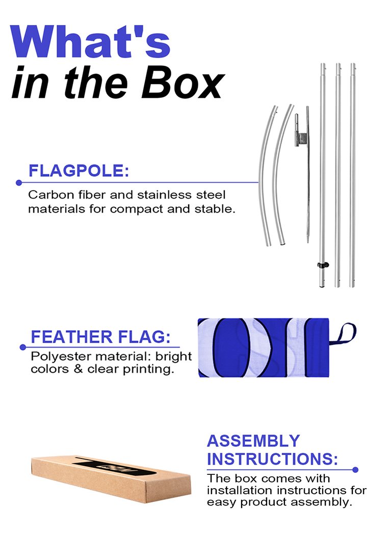 - Pluma flago alteco 11.5FT, larĝo 3FT, taŭga por 15FT pluma flagstango, Flagstango ne inkluzivita.