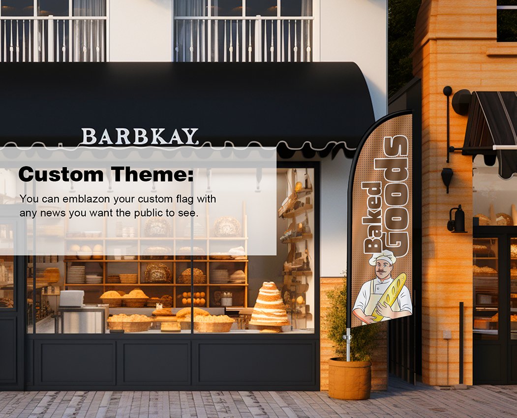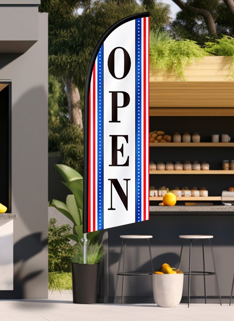 - Freŝa delikataĵa pluma flago okulfrapa. kun aŭ sen vento, la flagoj estas ĉiam malfermitaj por montri vian mesaĝon.